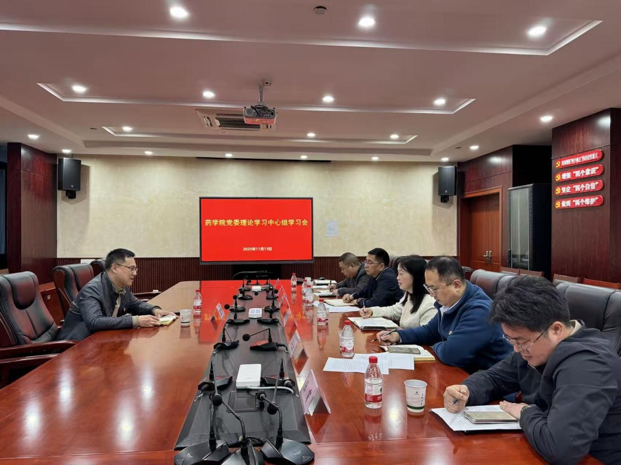 11月13日,药学院党委理论学习中心组召开专题学习会,传达学习习近平总书记在党的二十届四中全会上的重要讲话和全会精神,以及国家“十五五”规划内容。院党委书记陈敏主持会议,学院领导班子成员参加会议,校党委委员蒋寒列席会议并指导。