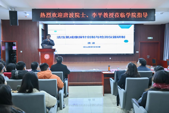 报告中,唐波院士以“看得见、分得清、测得准”为主线,系统介绍了其团队在活性氧成像探针创制与检测仪器研制方面的重要进展。在“看得见”方面,团队针对传统ROS检测方法的局限,基于VIA族元素识别位点开发了新型原位成像探针,并创新构建化学发光共振能量转移体系,实现了对超氧阴离子自由基的超高灵敏度检测。围绕“分得清”目标,团队研制出系列多色、多尺度荧光探针,结合双光子/近红外成像策略,发展了具有深穿透、高分辨、长时程特性的靶向探针,成功揭示了从细胞器到活体水平的氧化还原稳态调控规律。为实现“测得准”,团队开发了连续流反应控制与微流控分析装置,实现在单细胞、单颗粒水平对ROS的精准分析,并推动了绿色化工工艺的突破,生动诠释了“化学创造仪器,仪器推动科学”的融合创新理念。