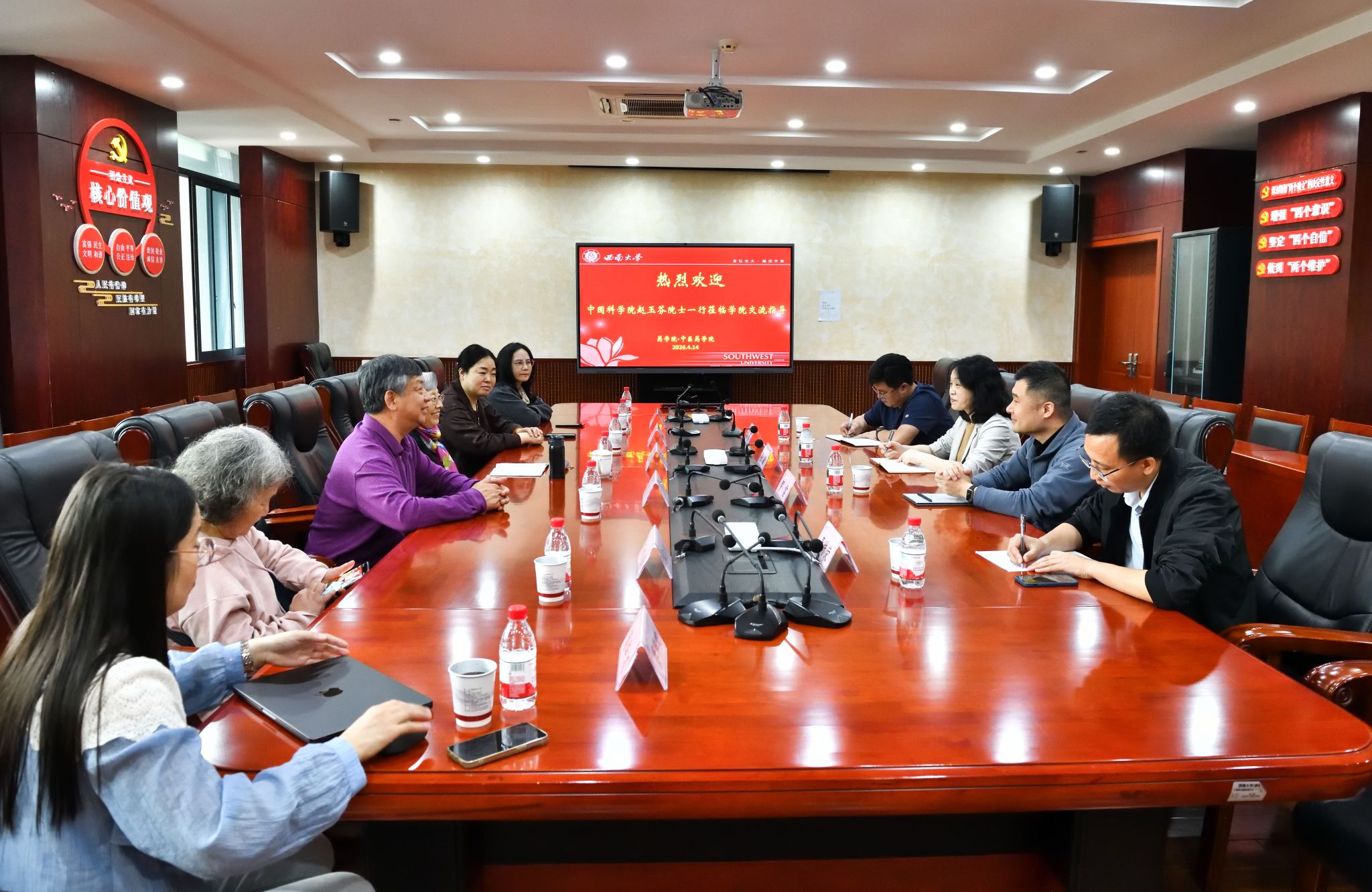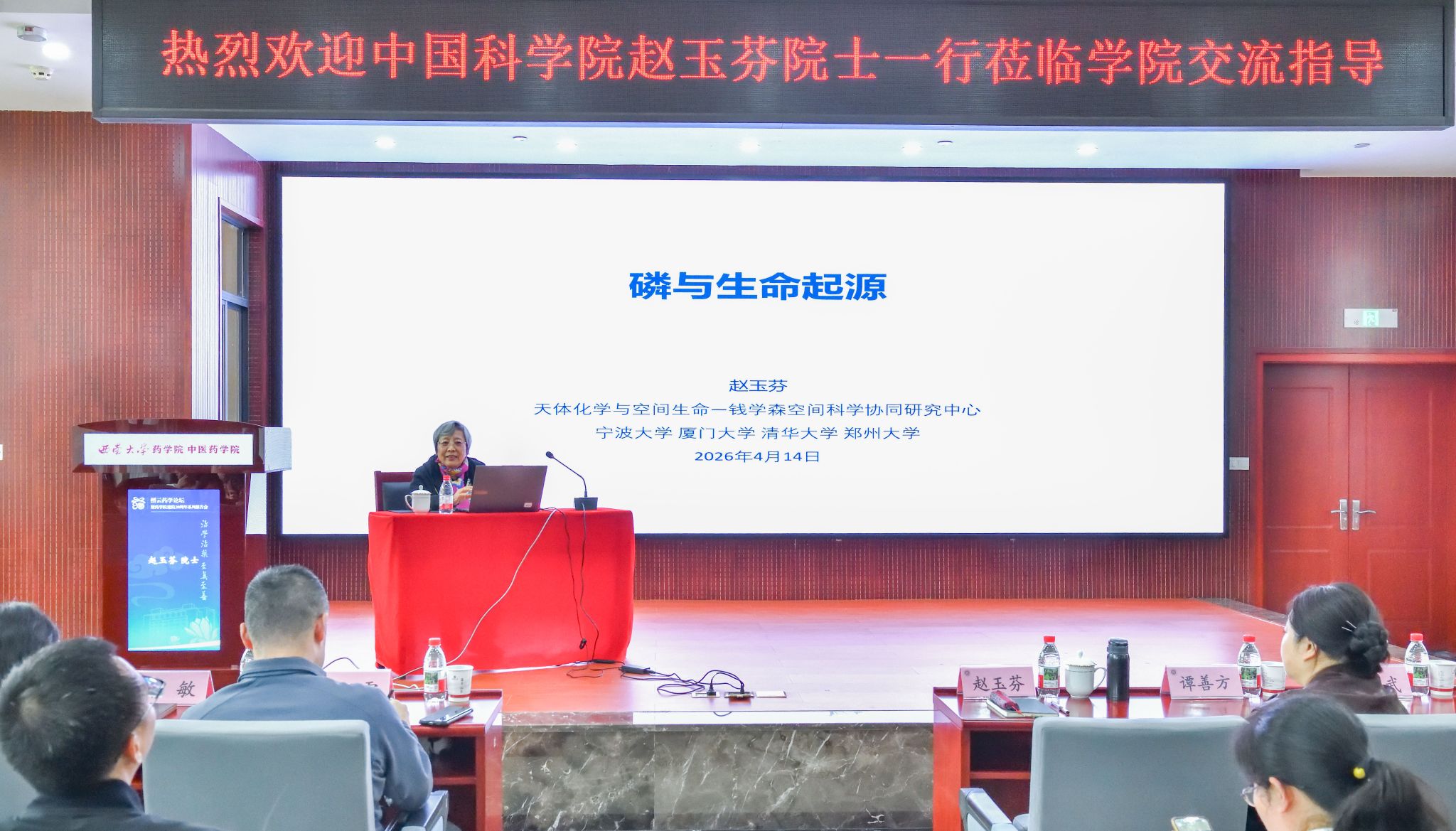 2026年4月14日下午,中国科学院院士、宁波大学新药技术研究院院长赵玉芬教授、北京英力公司董事长尹应武教授等一行6人莅临我院交流指导。座谈会由陈敏书记主持,她对赵玉芬院士一行的到访表示热烈欢迎。罗雷院长围绕学院办学定位、科技创新、人才培养等方面作了详细介绍。赵玉芬院士对我院近年来发展成效给予充分肯定,并就大健康产品研发及其航天领域应用等议题展开深入交流。