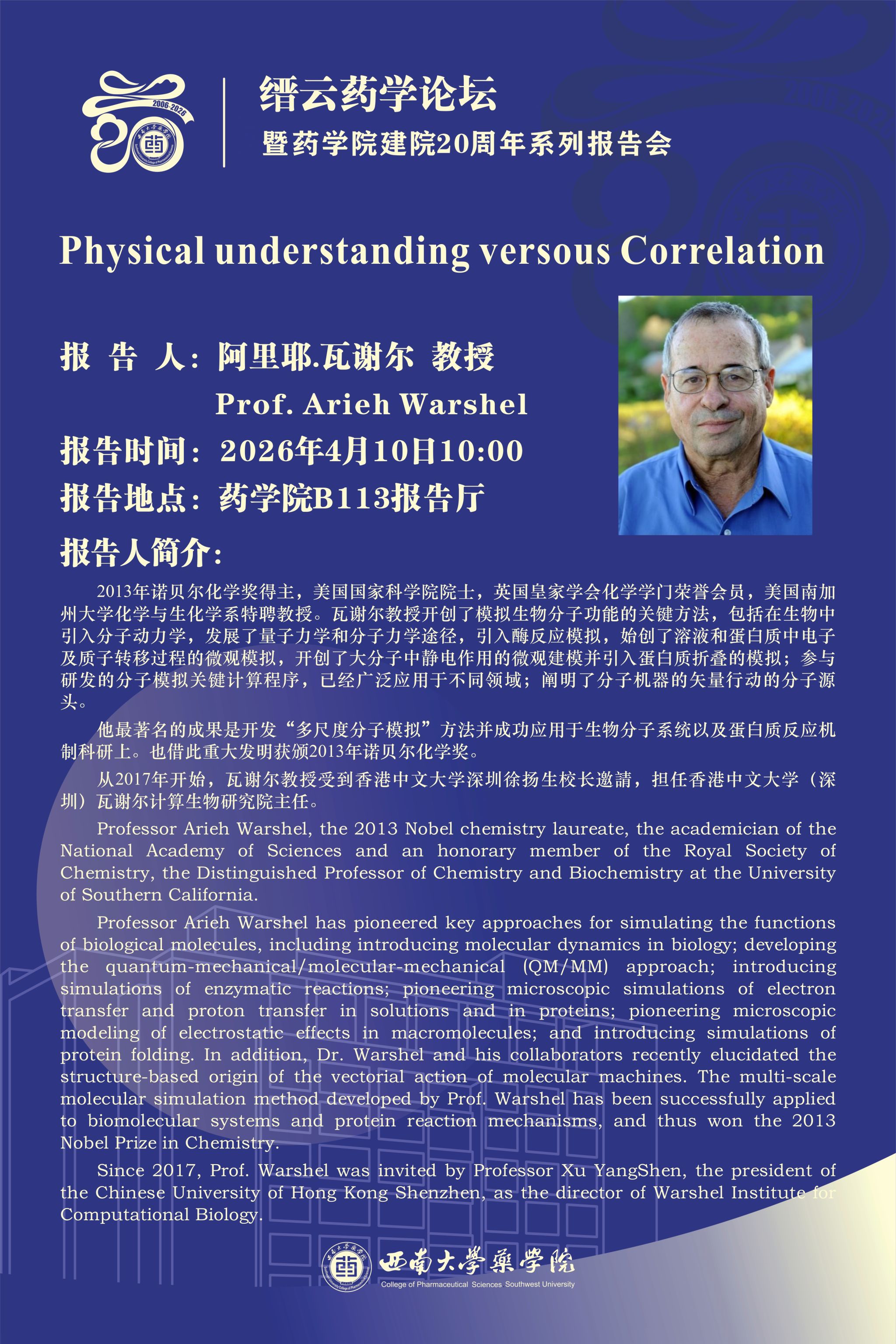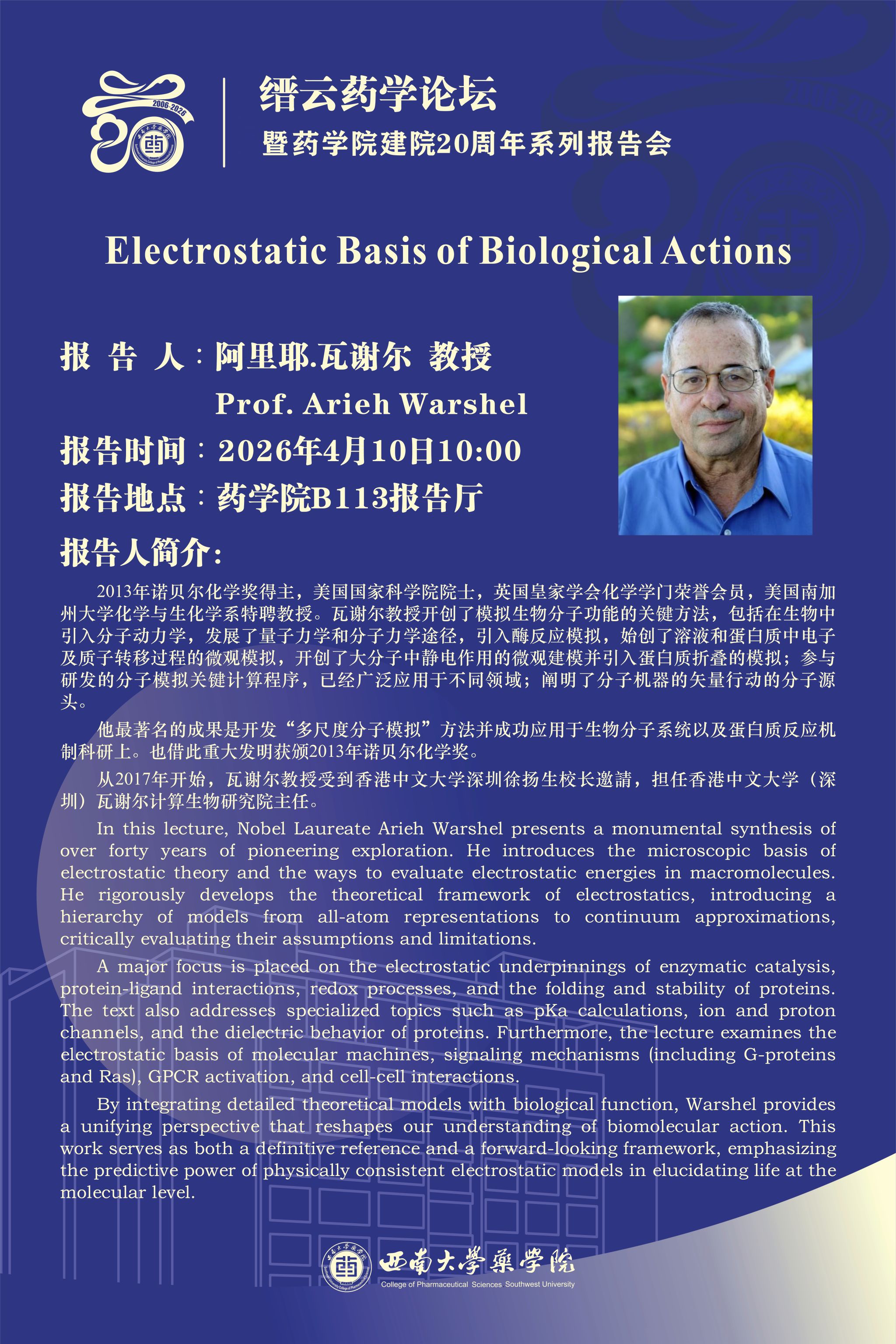 缙云药学论坛暨药学院建院20周年系列报告会(二十四):诺贝尔化学奖得主阿里耶·瓦谢尔学术报告